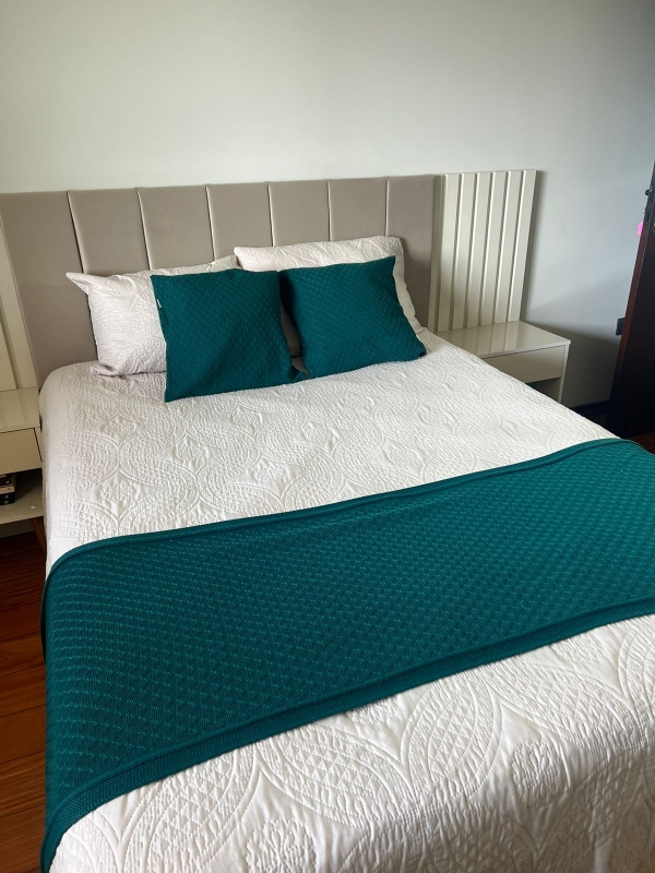 Kit Peseira Decorativa para cama Casal Losango - Verde petroleo