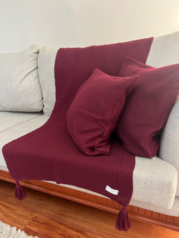 Kit Peseira Decorativa para cama Casal Pompom - Vinho
